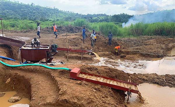 現在シエラレオネのKONO地区「Blue Water」にて現地企業と日本企業とで合弁会社を設立し漂砂鉱床での採掘を行なっています。地権者である部族長の許可と協力を得て環境省の検査基準を満たし政府のマイニングライセンスを取得し地元の方々を雇用しています。