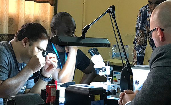 シエラレオネ提携企業のオフィスにて現地の方達が採掘したホワイトやカラーダイヤモンド原石の買付を行っています。購入した原石はキンバリープロセス証明書を取得し、タイの提携工場にてGIA基準の3EXやH&Cにカットして販売しています。